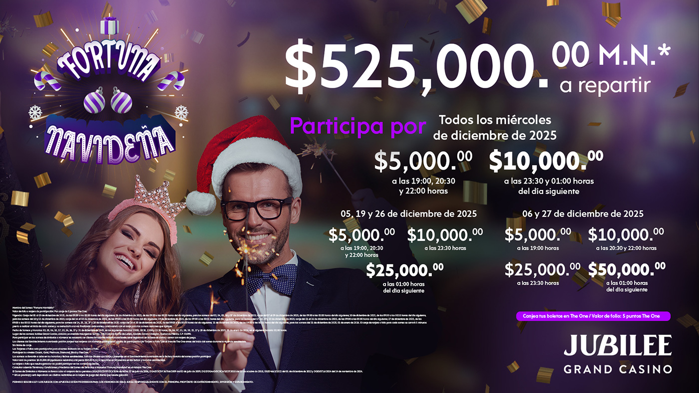 Explora las sorpresas que podrás encontrar en nuestros eventos especiales y emocionantes promociones que te ofrecerán aún más razones para visitar Jubilee Grand Casino.