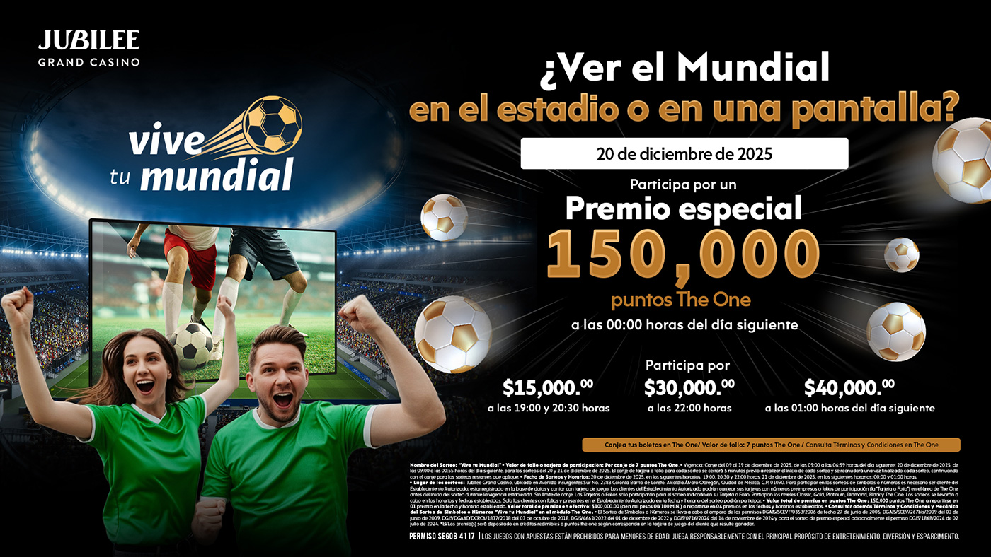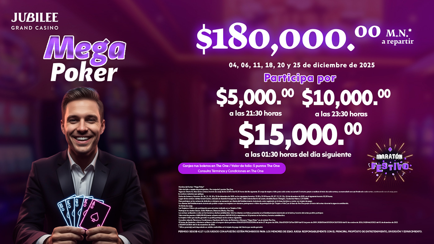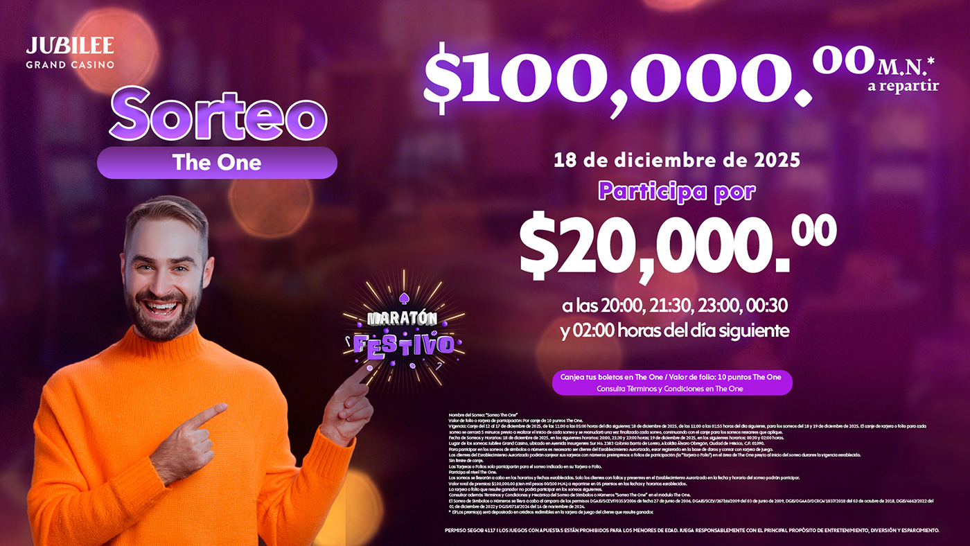 ¡Bienvenido al Jubilee Grand Casino! Siente la emoción y la diversión en nuestro exclusivo casino en el corazón de la Ciudad de México. Te esperamos con una experiencia inigualable los 7 días de la semana.