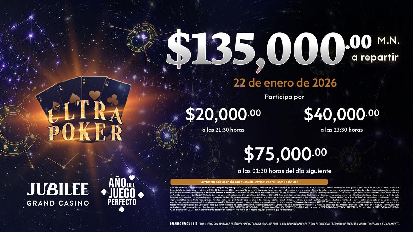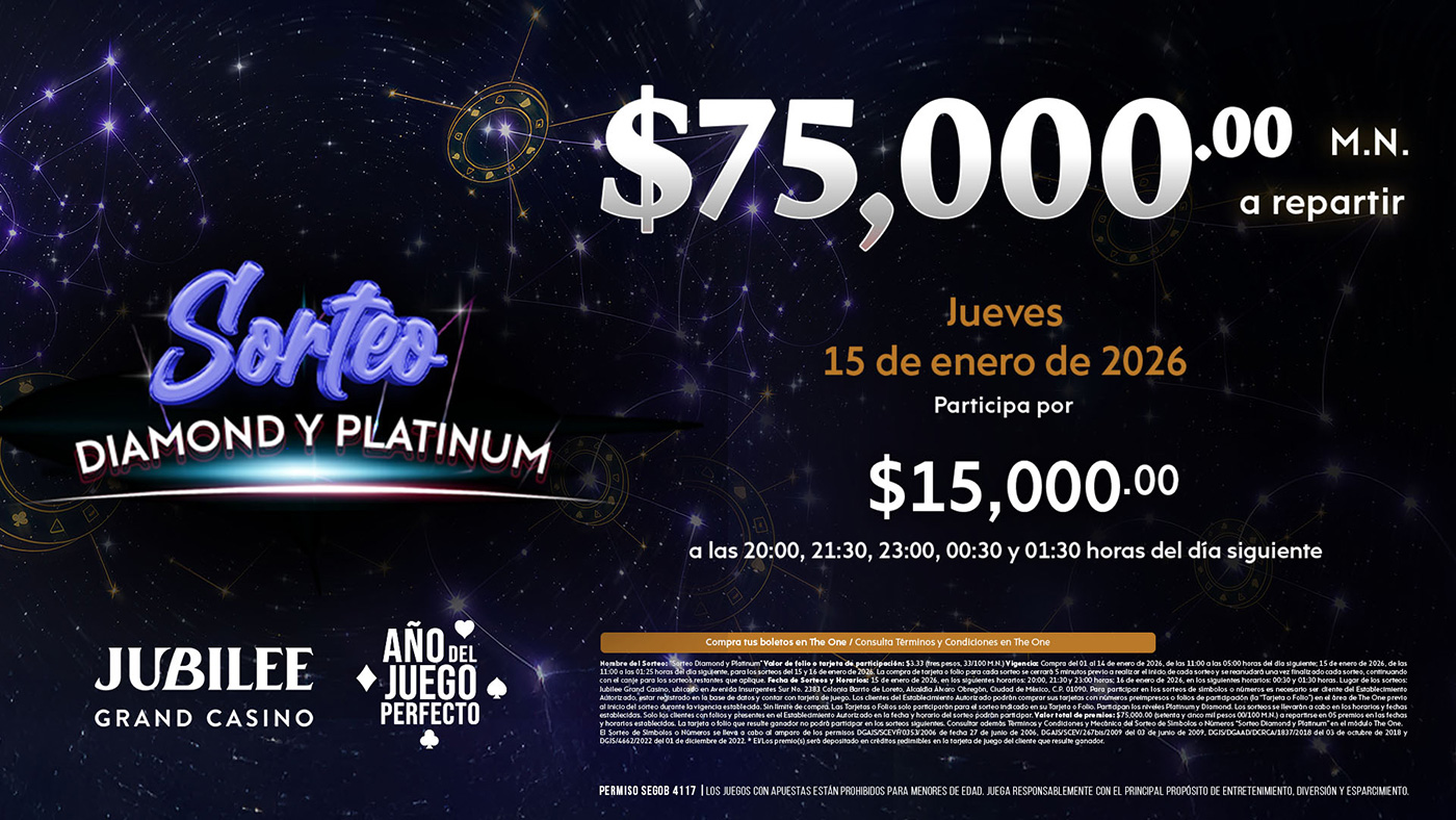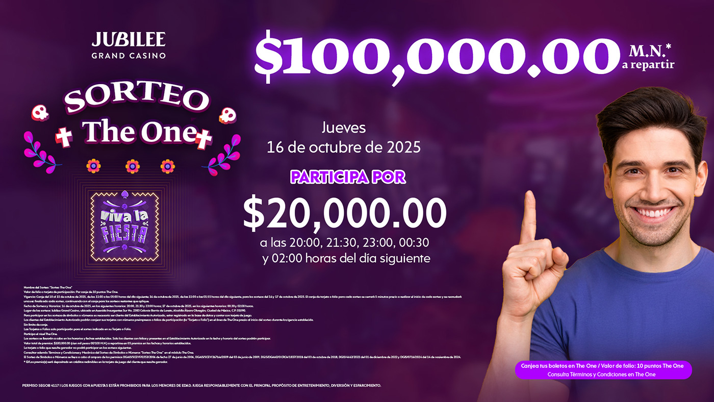 ¡Bienvenido al Jubilee Grand Casino! Siente la emoción y la diversión en nuestro exclusivo casino en el corazón de la Ciudad de México. Te esperamos con una experiencia inigualable los 7 días de la semana.