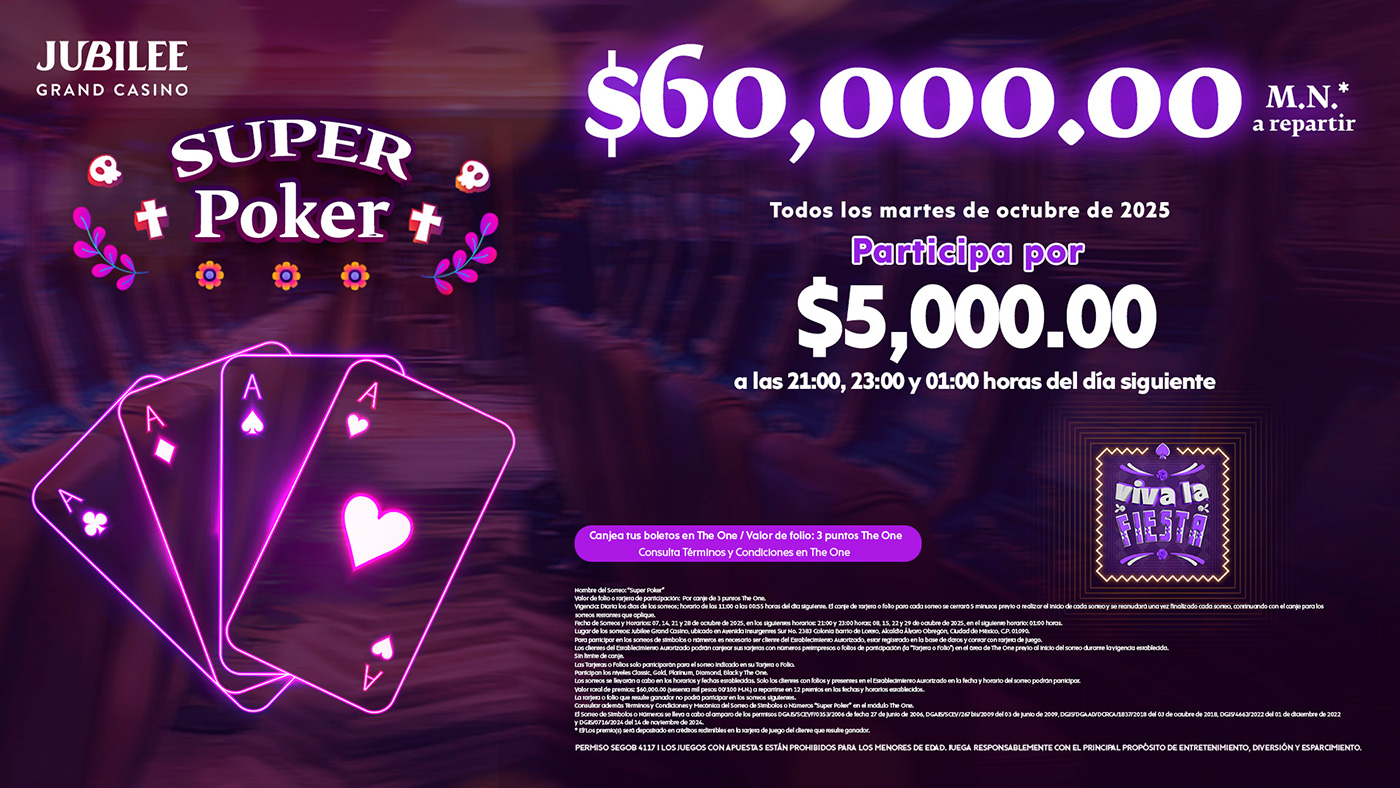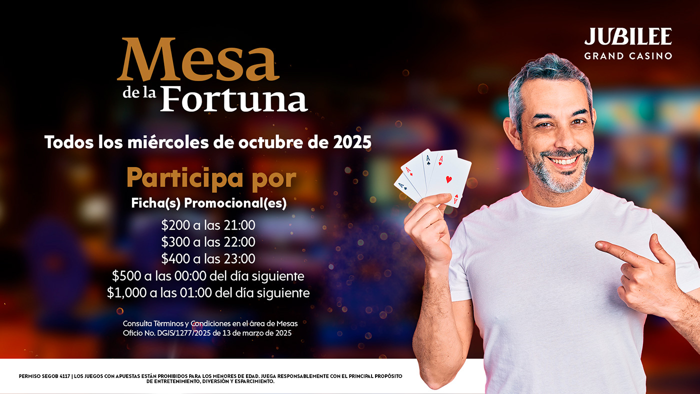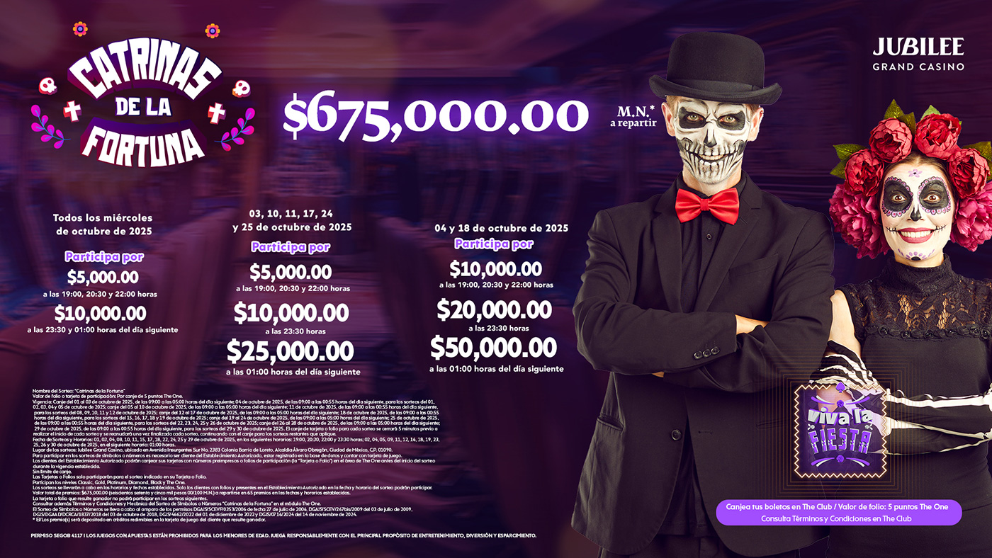 ¡Bienvenido al Jubilee Grand Casino! Siente la emoción y la diversión en nuestro exclusivo casino en el corazón de la Ciudad de México. Te esperamos con una experiencia inigualable los 7 días de la semana.